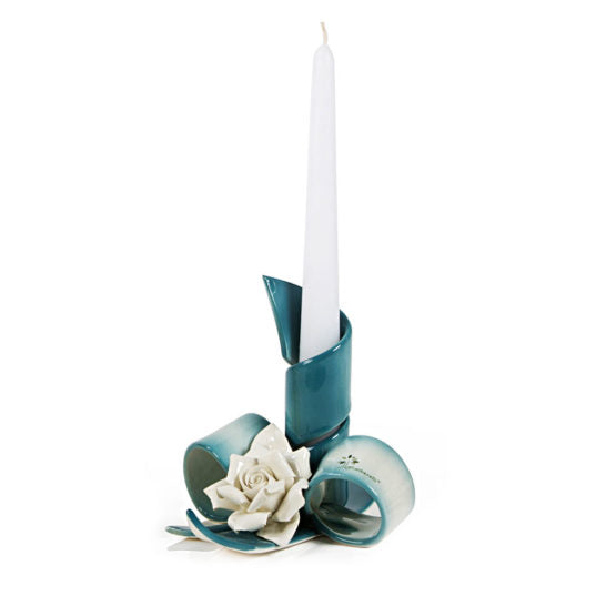 PORTACANDELA A FASCIA VERDE ARDESIA CON FIORE
