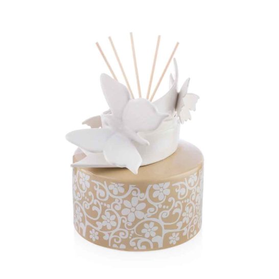 Profumo per l’ambiente in ceramica con decorazione farfalle.